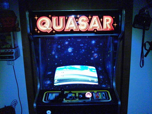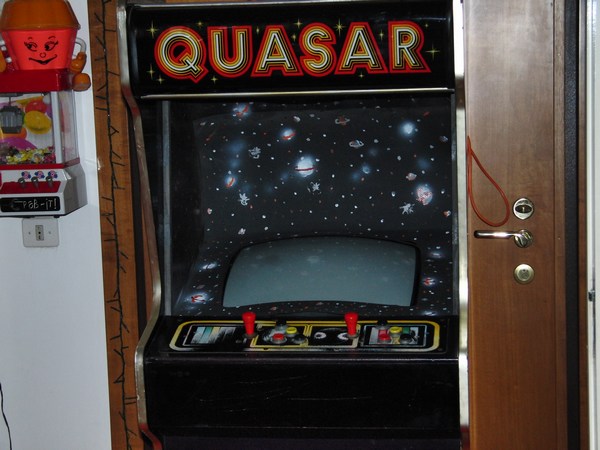 Singnori e signore ...........un QUASAR DELLA ZACCARIA del 1980! stavolta la gloria di aver trovato un pezzo del genere e la gioia di poter possedere un davvero raro pezzo italiano! :) Per chi sa e per chi non sa la zaccaria (tre fratelli italiani) produsse ed esportò migliaia di flippers! i fratelli zaccaria si lanciarono verso la metà degli anni 80 anche nell'impresa di produrre videogames; i più noti MONEY MONEY, JACK RABBIT ed altri. La faccenda andò ma non troppo perchè il declino degli arcade era vicino ma comunque fecero anche loro storia