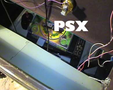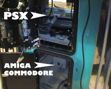 La consolle della Playstation ed il pc Amiga alloggiano all'interno del cabinato, la prima su un ripiano a mezz'altezza mentre il pc nella superficie di base del mobile.