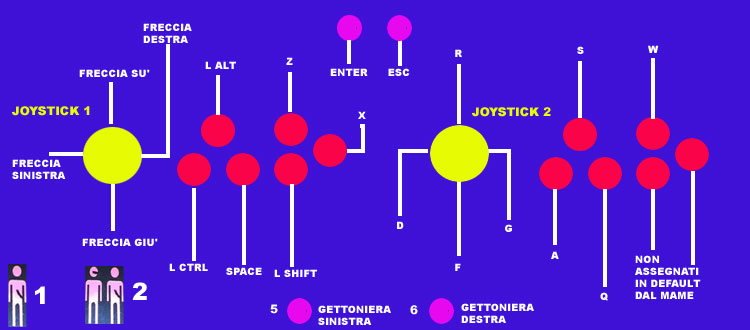 Il Mame usa in default una serie di tasti ormai nota. Questi sono i tasti da "replicare" sui comandi del cabinato, segue uno schema spero chiaro per tutti. |