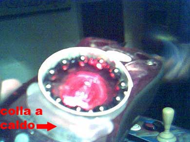 Fisso tutto nuovamente con colla a caldo, e che sia di quelle di qualità !!! La si puo' notare alla base del cilindro.
