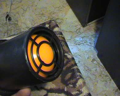 Ecco un tubo in plastica usato per dar sfogo alle frequenze basse nelle casse acustiche.