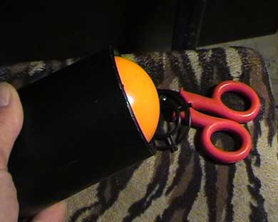 Chiaramente me ne sono andato in giro per casa con la sfera da biliardo tra le mani, la "ficcavo" dappertutto sino ad aver trovato questo bellissimo oggetto che la contiene con precisione.