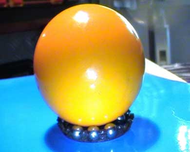 Adesso poggiando la sfera da biliardo sulla ghiera di sferette la si fà roteare e tutto va alla perfezione!!! :-) :-)